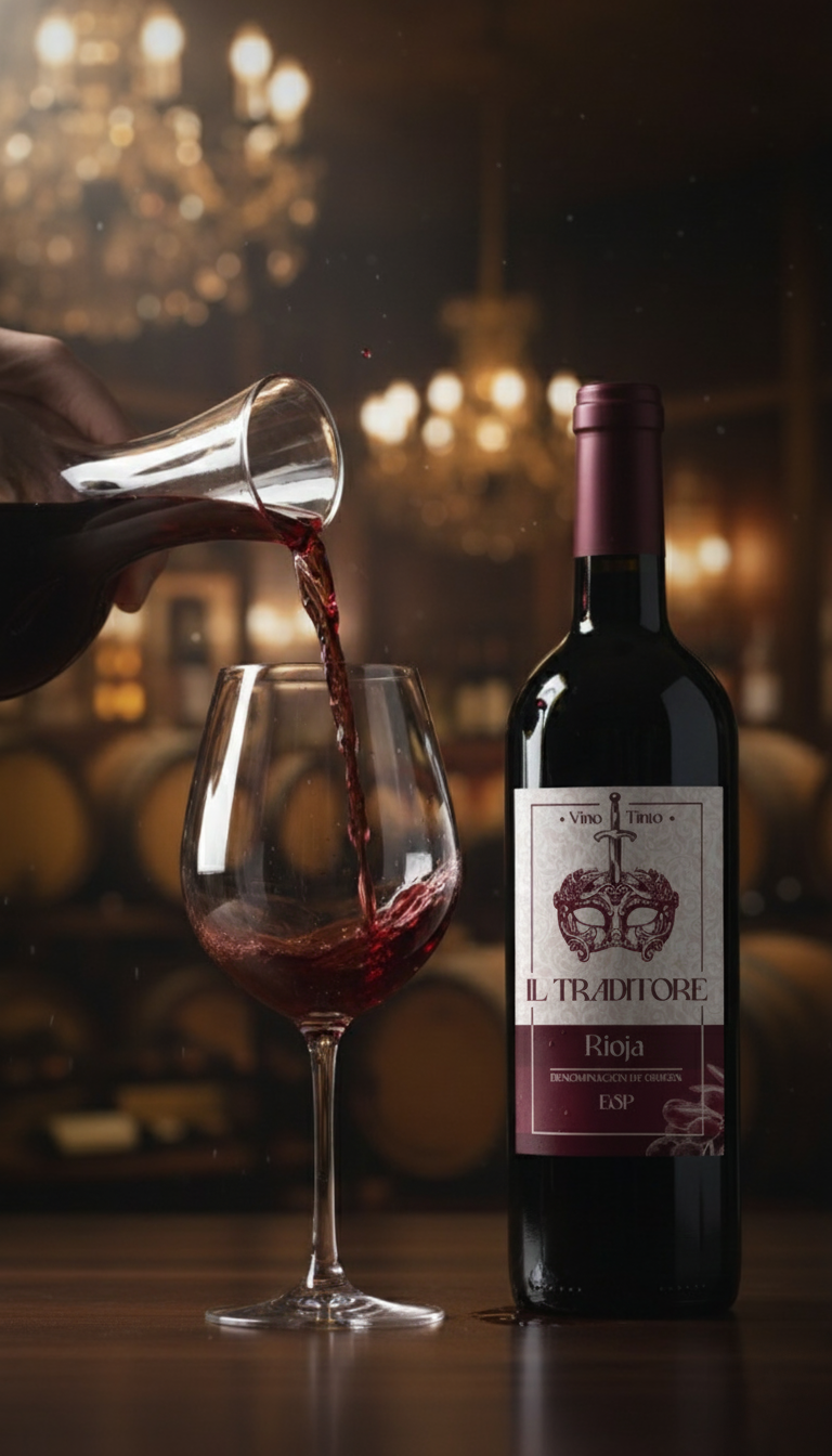 Il Traditore es un tinto D.O. Rioja de carácter intenso y espíritu rebelde. Un vino creado para la noche, para momentos especiales y pasionales, donde el placer se sirve en copa y las reglas quedan en segundo plano.